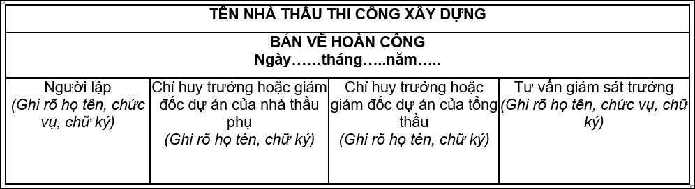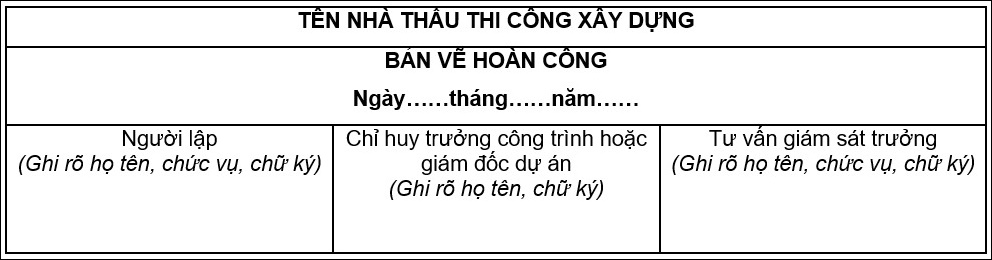 - Bản vẽ hoàn công giai đoạn xây dựng