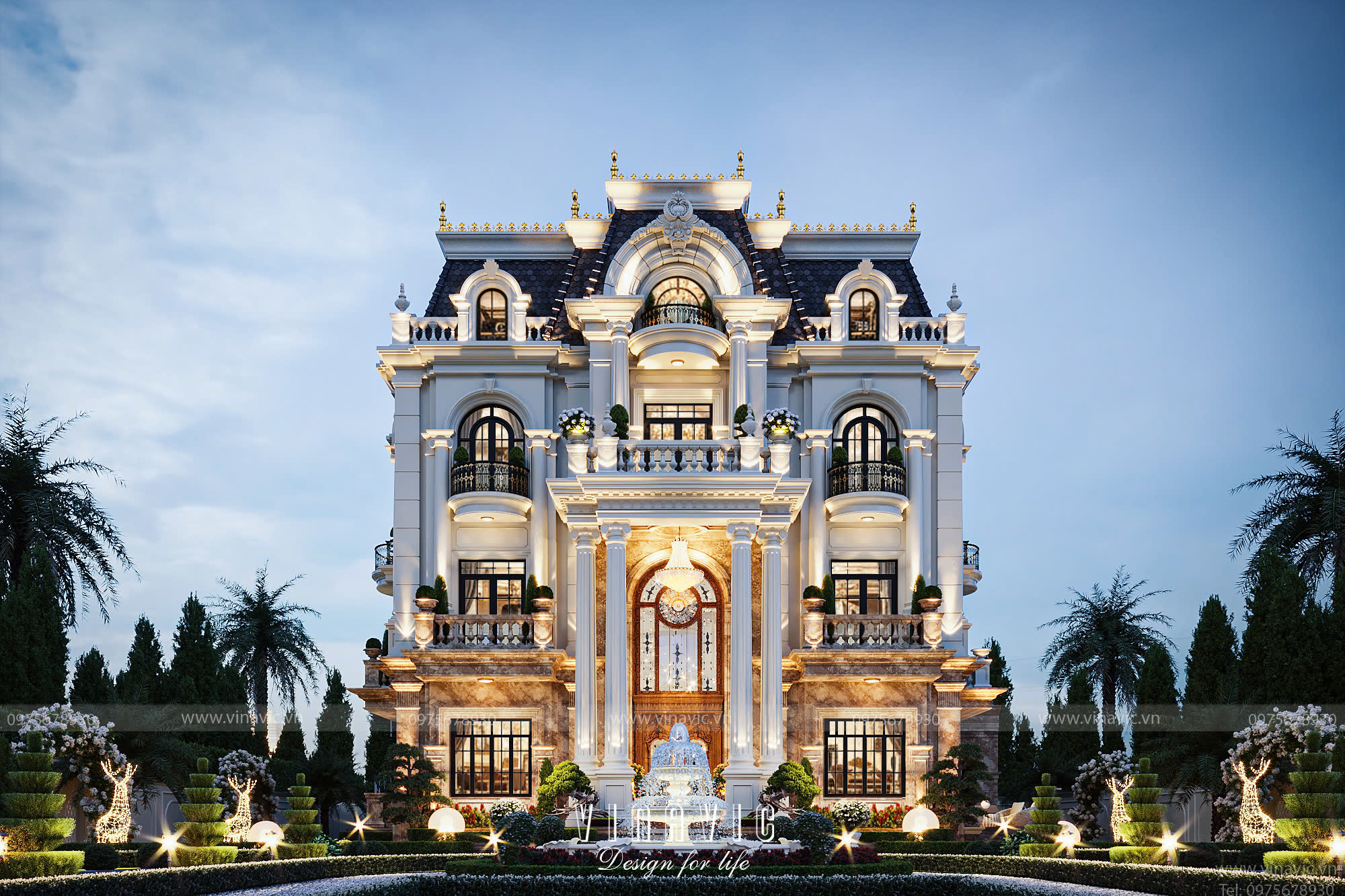 Đặc biệt, vào ban đêm, hệ thống chiếu sáng kiến trúc được lập trình kỹ lưỡng. Ánh sáng vàng ấm hắt lên từ chân các cột, chiếu rọi vào các vòm cửa, và một chiếc đèn chùm pha lê khổng lồ ở sảnh chính... biến tòa biệt thự thành một "ngọn hải đăng" rực rỡ, lung linh và đầy kiêu hãnh.