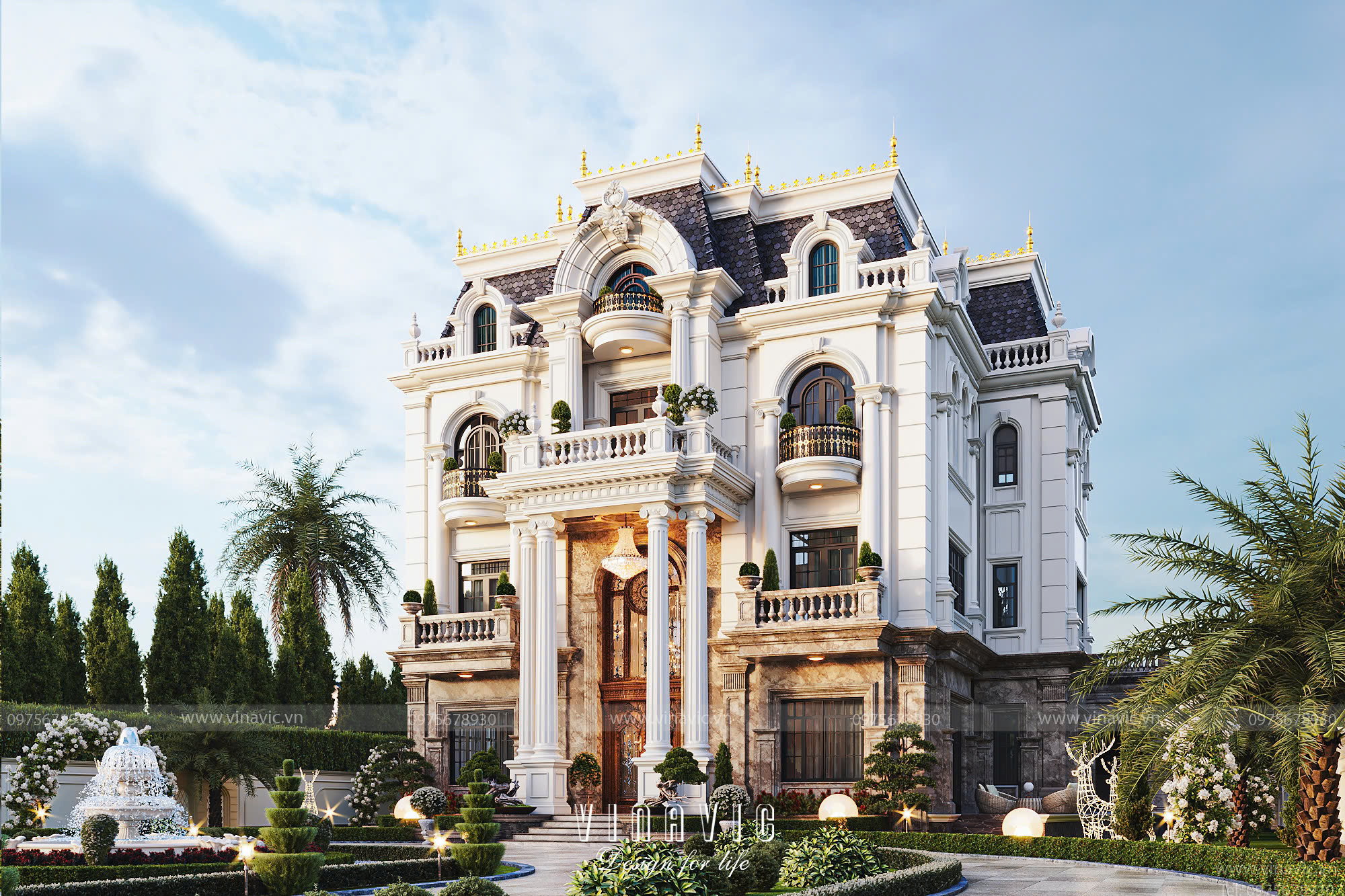 Với quy mô 1 trệt, 2 lầu và 1 tầng áp mái độc đáo, trên diện tích xây dựng 23x23m, ngôi biệt thự đẹp phô diễn trọn vẹn sự bề thế, uy nghi qua từng chi tiết kiến trúc Pháp đặc trưng. Từ hệ thống cột trụ La Mã-Hy Lạp, những đường phào chỉ, hoa văn đắp nổi tinh xảo, đến hệ mái Mansard "vương giả", tất cả hòa quyện tạo nên một tác phẩm nghệ thuật đồ sộ, trường tồn với thời gian.
