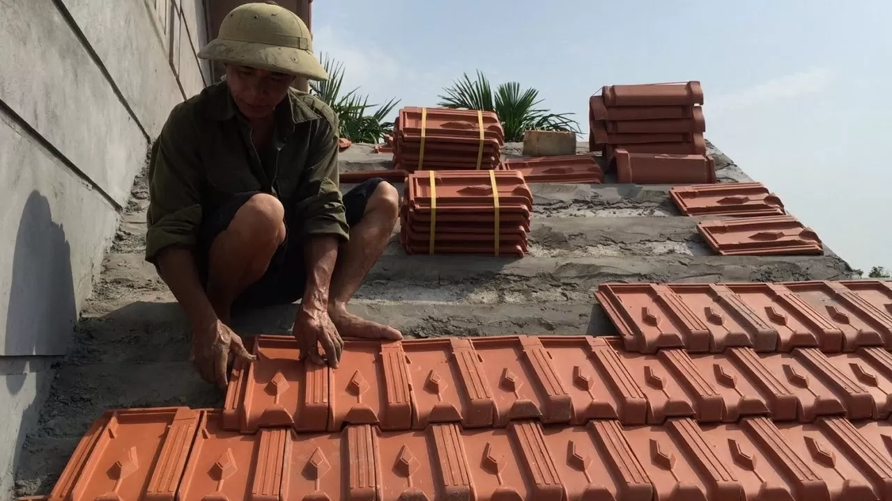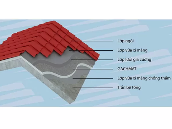 Lớp ngói: Ngói được dán vào lớp vữa xi măng, ngói thường dùng ở đây cụ thể là ngói đất nung, ngói xi măng, ngói tráng men tùy vào yêu cầu từ chủ đầu tư, thẩm mỹ của công trình.