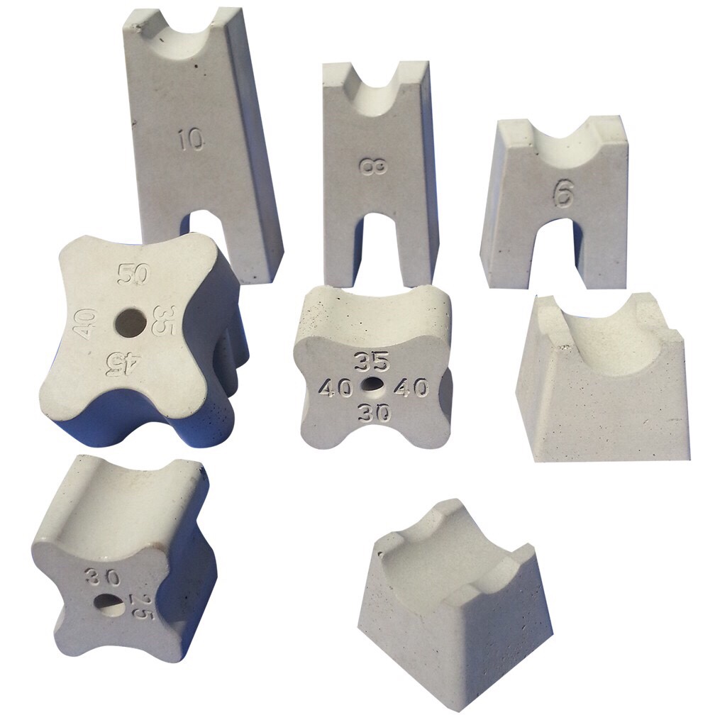 Con kê đang năng được dùng để kê cột, dầm hoặc vách. Chúng có tính năng luồn sợi thép giúp thuận tiện khi buộc vào cột.