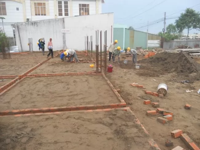 - Thực hiện việc đắp đất/cát lên mặt bằng.