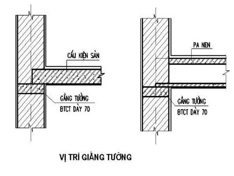Giằng tường được đặt tại vị trí cạnh trên và cạnh dưới cửa sổ, vị trí tường kết thúc và có thể kết nối tường ngang và tường dọc thành một khối thống nhất, giúp giảm khả năng rạn nứt tường.