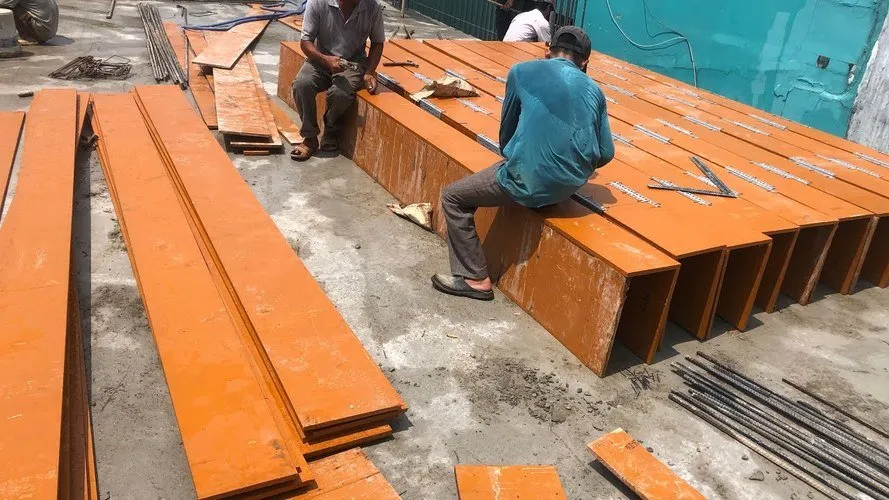 - Gỗ cốp pha dùng để lắp hệ khuôn dầm sàn trước khi đổ bê tông.