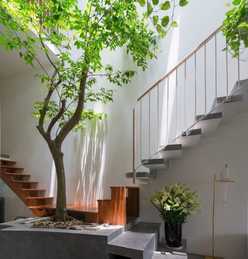 - Ánh sáng và thông gió: nếu được, bố trí cầu thang gần giếng trời để tận dụng ánh sáng tự nhiên.