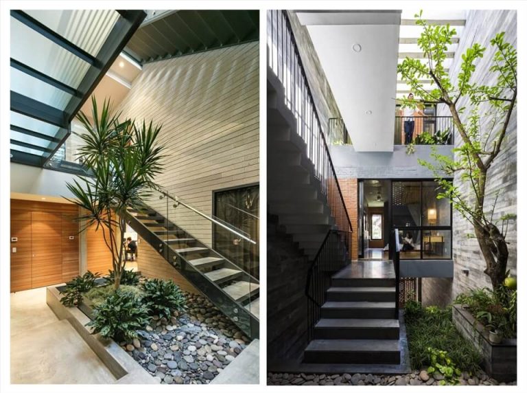 Giếng trời là khu vực lý tưởng để thiết kế sân vườn cho nhà phố. Nơi này giúp chúng ta có thể khai thác tối đa nguồn ánh sáng tự nhiên, giúp cây cỏ phát triển mạnh mẽ và biến ngôi nhà thành một bức tranh ấn tượng.