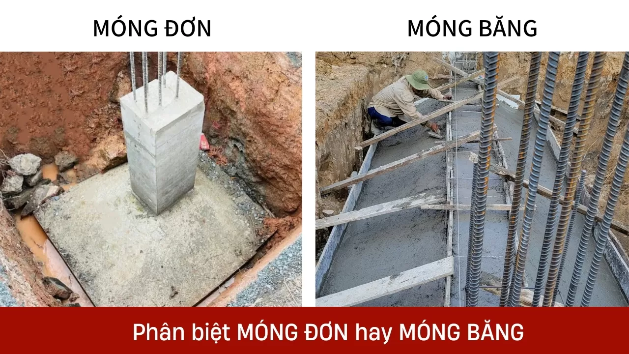 Móng đơn và móng băng có những điểm khác nhau mà bạn có thể phân biệt qua các yếu tố như: