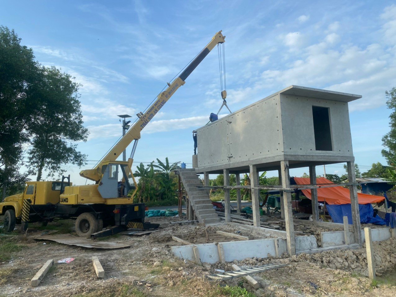 Tiến hành lắp đặt mẫu nhà bê tông đúc sẵn