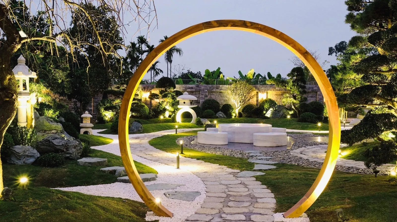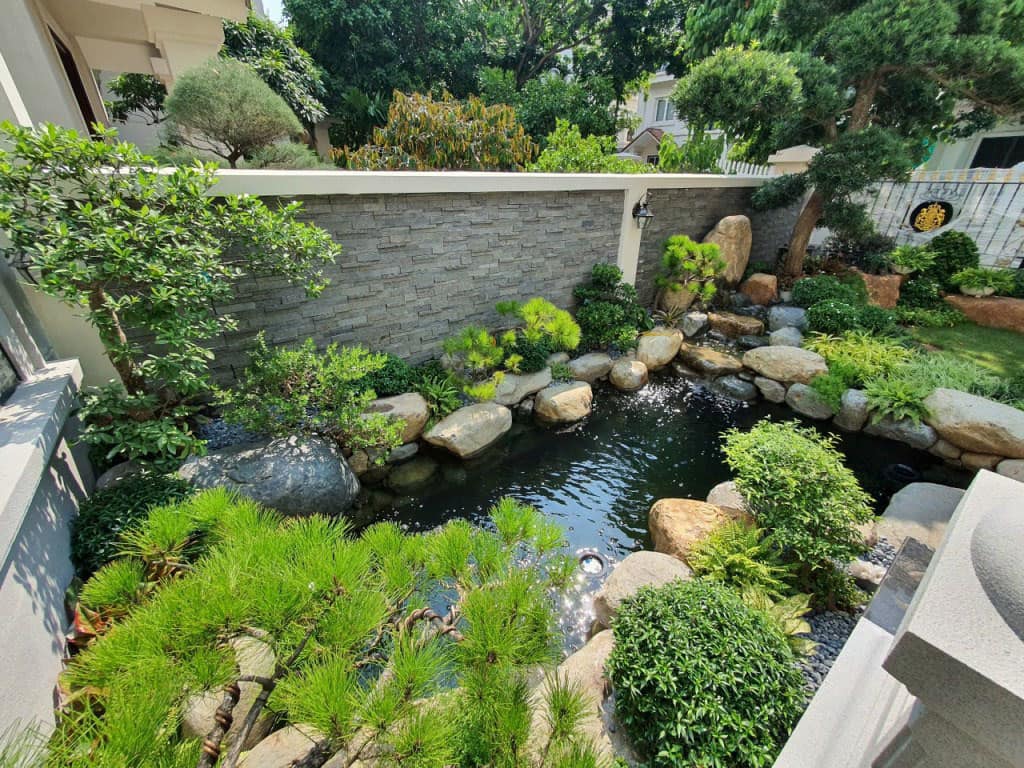 Sân vườn Thiền: Với thiết kế mang đến sự yên bình tĩnh lặng như cát, đá, bonsai, hòn non bộ....tạo nên một không gian thiền định giúp gia chủ thư giãn nhẹ nhàng.
