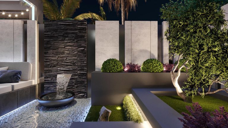 Thiết kế tiểu cảnh sân vườn tối giản: Xu hướng này sẽ tập chung vào tối giản chi tiết, dùng ít cây xanh. Màu chủ đạo là trắng, đen xanh lá tạo không gian hiện đại tinh tế, sáng tạo. Xu hướng thiết kế này phù hợp với những gia chủ bận rộn yêu thích sự đơn giản.