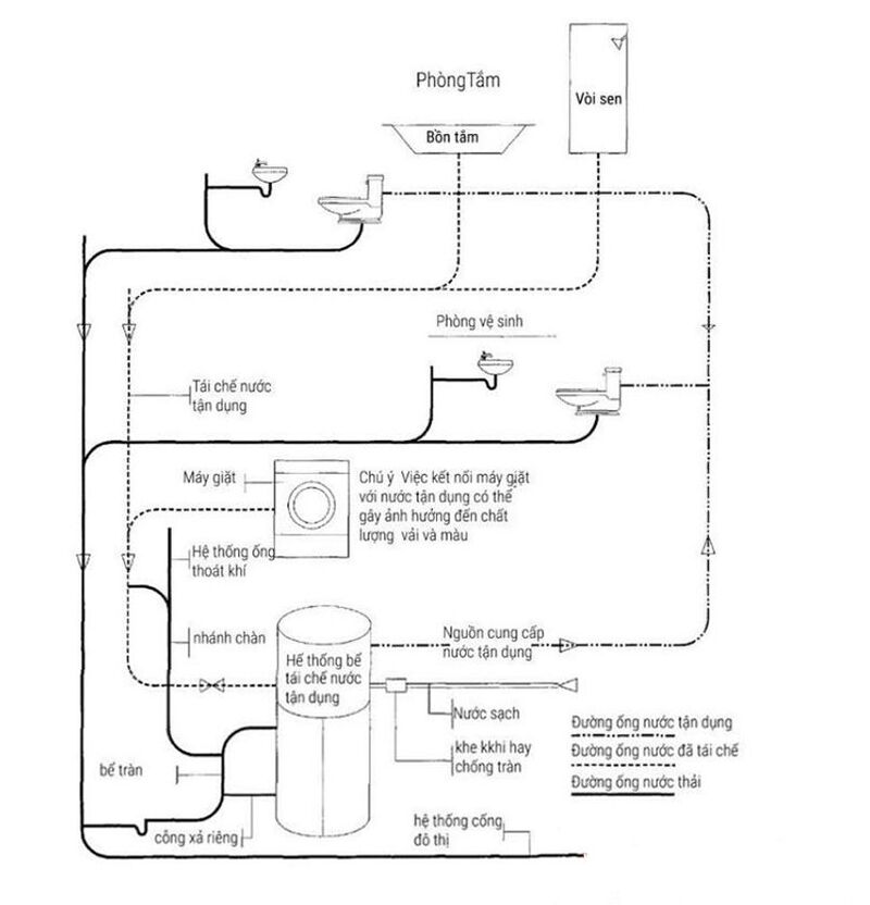 Sơ đồ cấp thoát nước phòng tắm, nước sinh hoạt