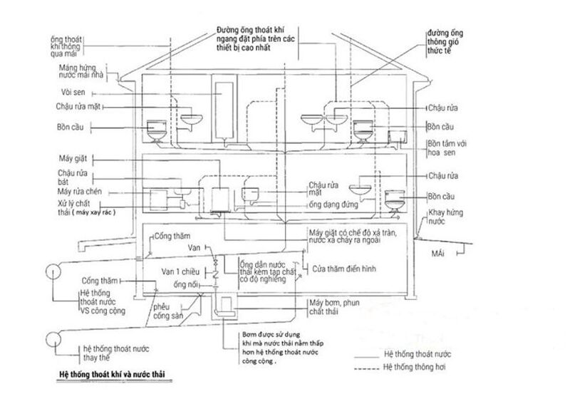 Hệ thống thoát nước sinh hoạt: Chức năng của hệ thống này đó là đưa nước thải ra khỏi nhà đến khu vực xử lý nước thải của thành phố, bể chứa,....