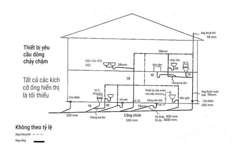 - Các thiết bị như bồn tắm, bồn cầu, máy giặt… cần có ống thoát nước đường kính > 38 mm.