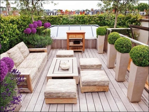 Biến sân thượng đẹp thành phòng khách là một ý tưởng độc đáo. Do vậy kết hợp thêm bộ bàn ghế để trang trí là yếu tố không thể bỏ qua.