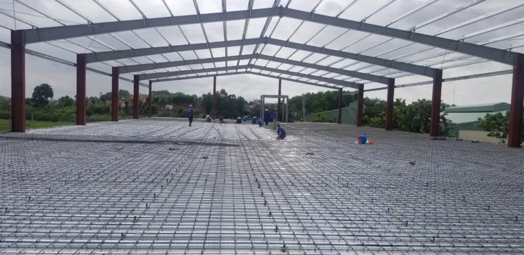 Với bước cột nhà xưởng thì có thể từ 9 -12m, chúng còn được chống bởi những thanh chống thép V để tăng khả năng chịu lực.