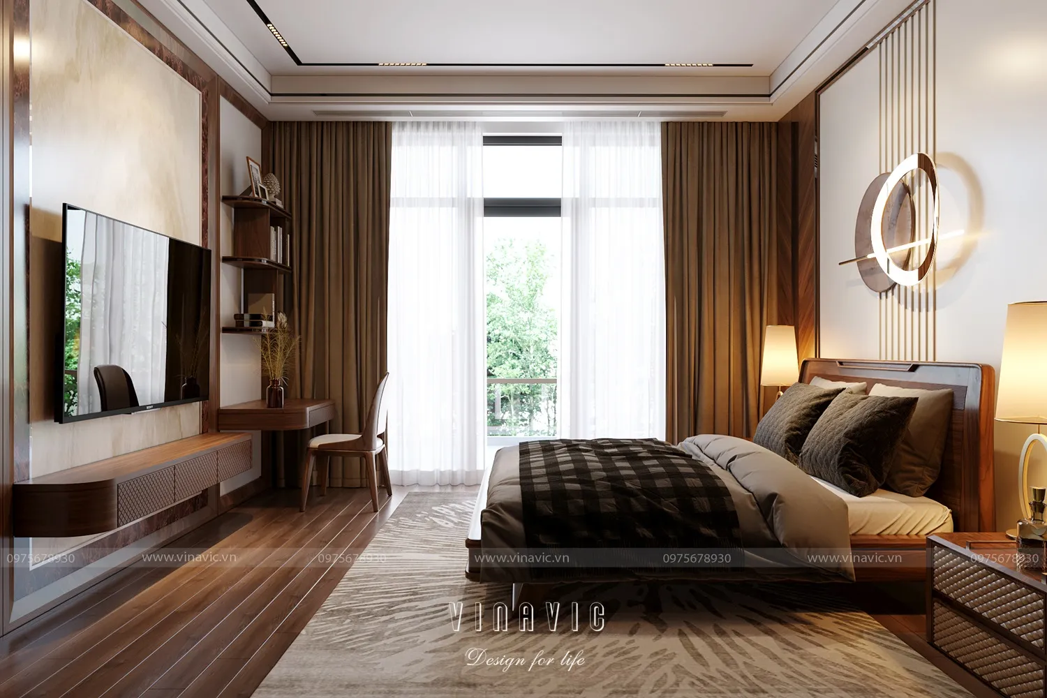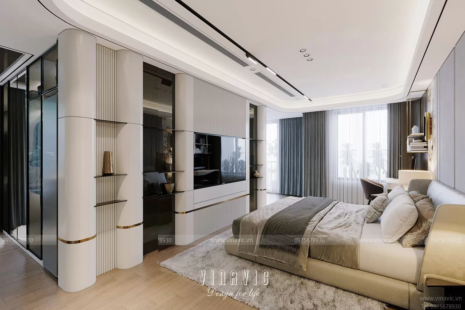 Kết hợp hệ tủ âm tường, góc làm việc, ban công hoặc vách kính nhìn ra vườn giúp không gian luôn tràn đầy sinh khí.