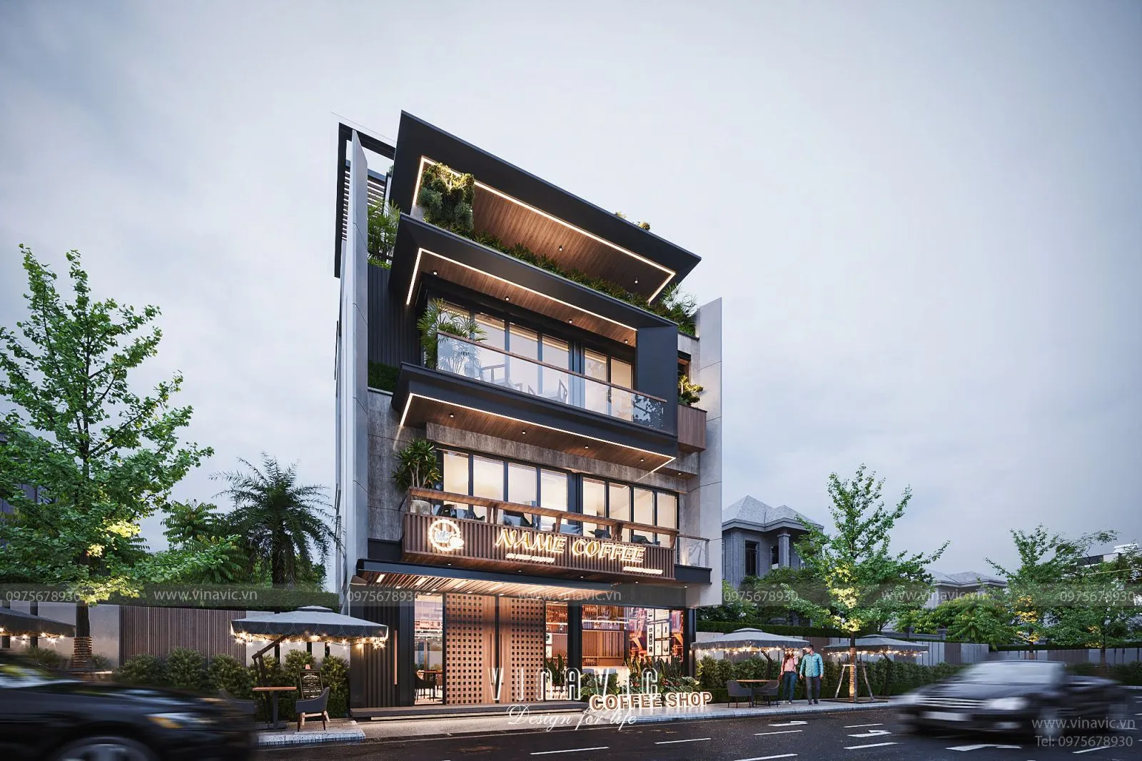 - Đặc điểm: Gam màu sáng, nội thất gỗ tự nhiên, thiết kế mở.