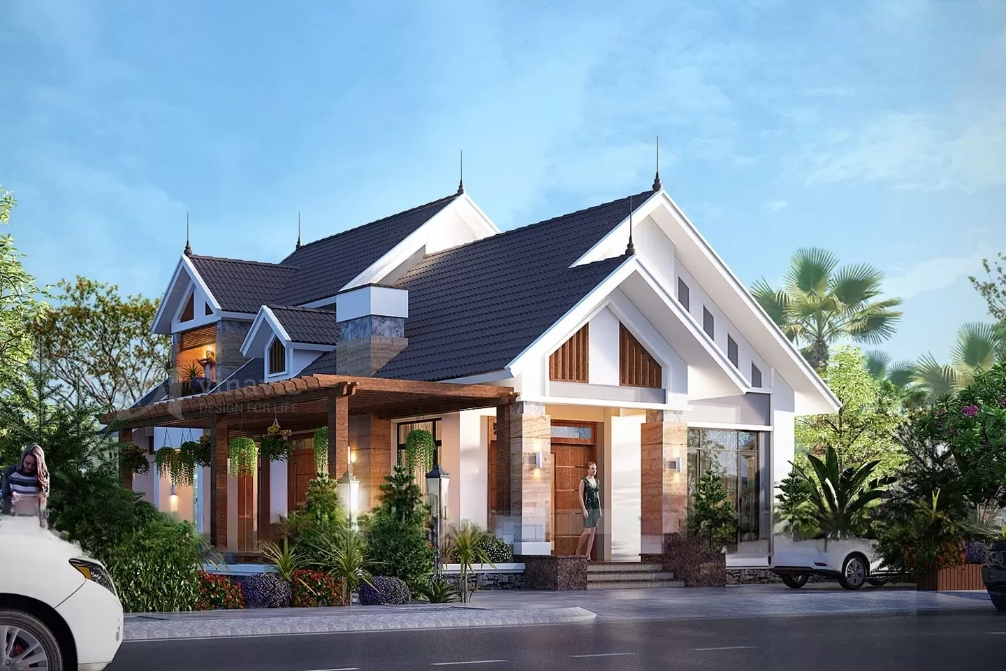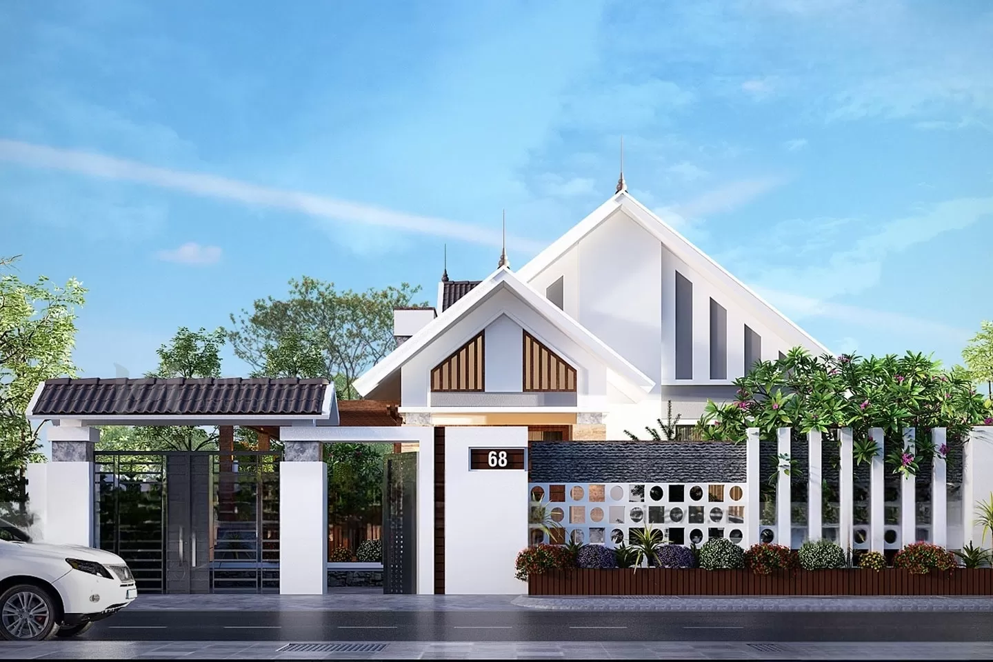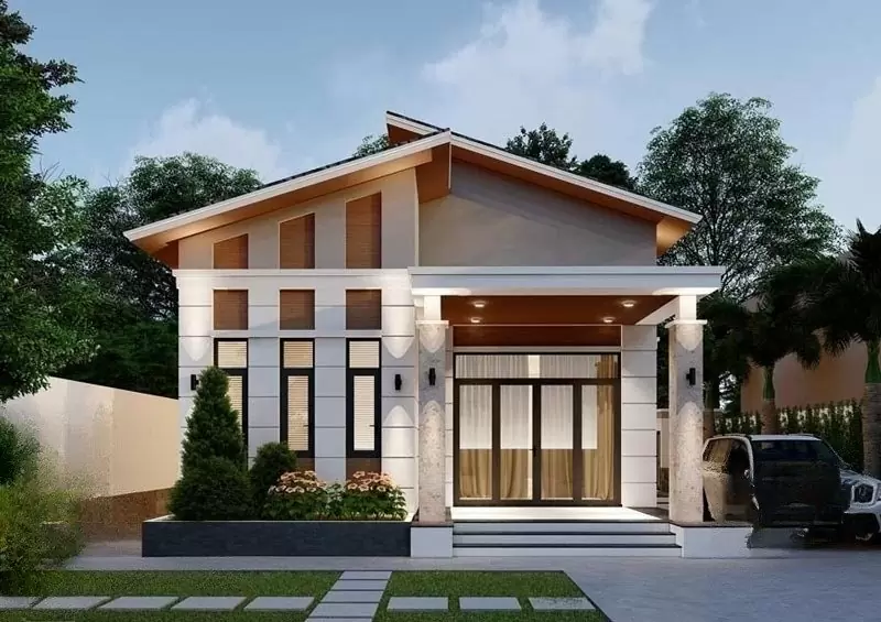 Thay vì những kiểu mái truyền thống thì nhiều gia chủ đang ưa chuộng kiểu mái lệch hoặc mái Thái để tạo điểm nhấn cho mặt tiền. Mái Thái không chỉ có tính thẩm mỹ cao và sang trọng mà còn giúp chống nóng, thoát nước mưa rất hiệu quả phù hợp với khí hậu tại Việt Nam.