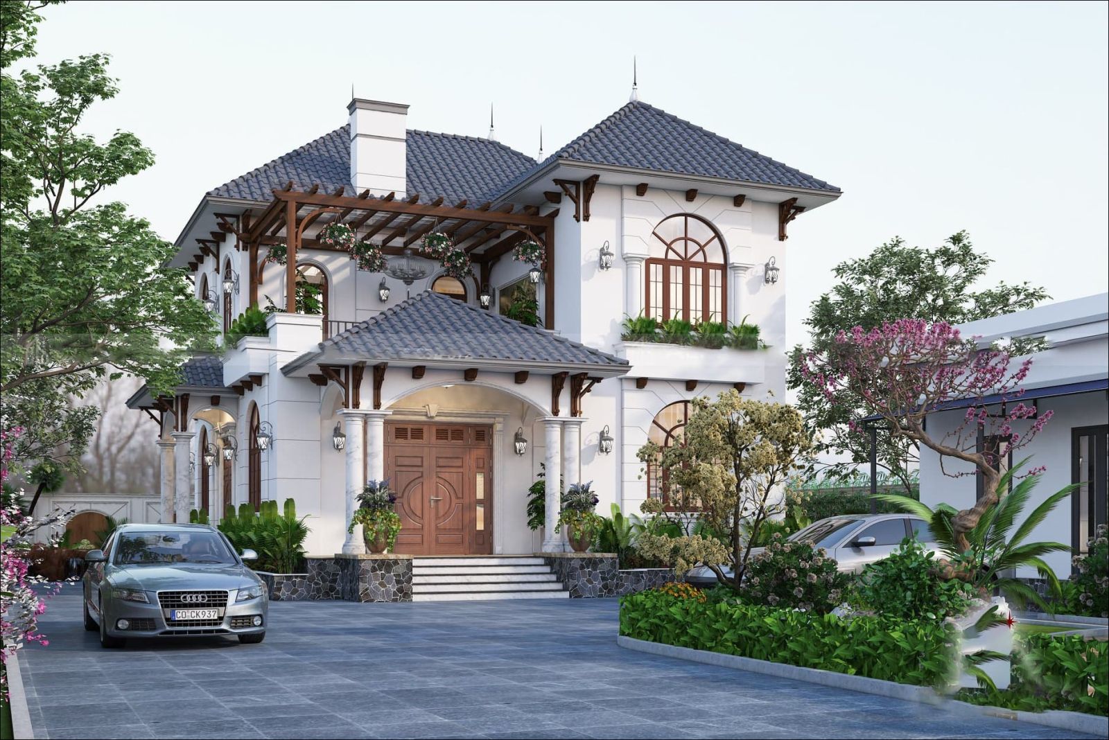 Mẫu nhà 2 tầng mái ngói tân cổ điển