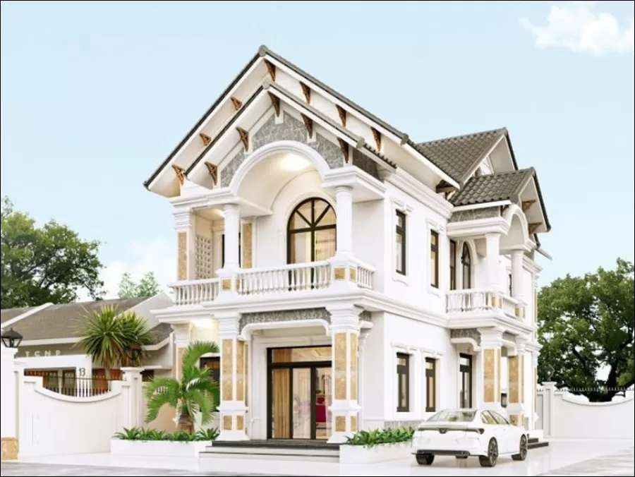 Phong cách tân cổ điển luôn mang đến vẻ đẹp sang trọng và lịch lãm. Mẫu nhà tân cổ điển với mái thái thường sử dụng những đường nét uốn lượn, hoa văn cầu kỳ để tạo điểm nhấn. Đây chính là sự hòa quyện giữa vẻ đẹp truyền thống và hiện đại.