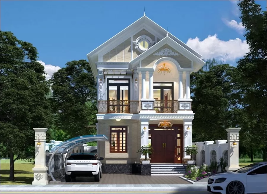 Mẫu nhà 2 tầng mái thái mặt tiền 7m tân cổ điển