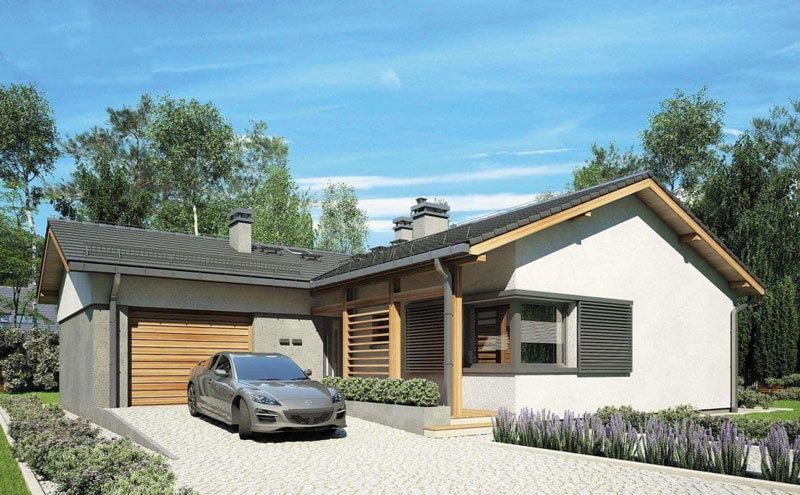 Mẫu nhà chữ L 1 tầng đẹp ở nông thôn có gara