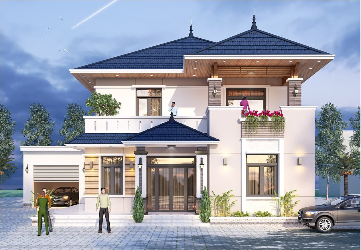 Nhà 2 tầng có gara ô tô mái Thái