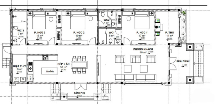 - Với diện tích không quá lớn nhưng 3 phòng ngủ được bố trí hợp lý, các phòng chức năng được tận dụng tối đa như phòng khách, bếp ăn, vệ sinh,......