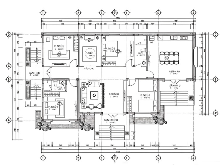 Nhà mái Thái mang đến vẻ đẹp sang trọng, phù hợp mà thiết kế chuẩn không gian thoáng mát. Bản vẽ gồm nhiều phòng chức năng như phòng khách, phòng ngủ, phòng bếp,...được thiết kế liền mạch tạo sự thông thoáng, tối ưu không gian và diện tích sử dụng. Sự bố trí hợp lý này giúp không gian trở nên rộng rãi hơn, đáp ứng nhu cầu của các gia đình đông thành viên.