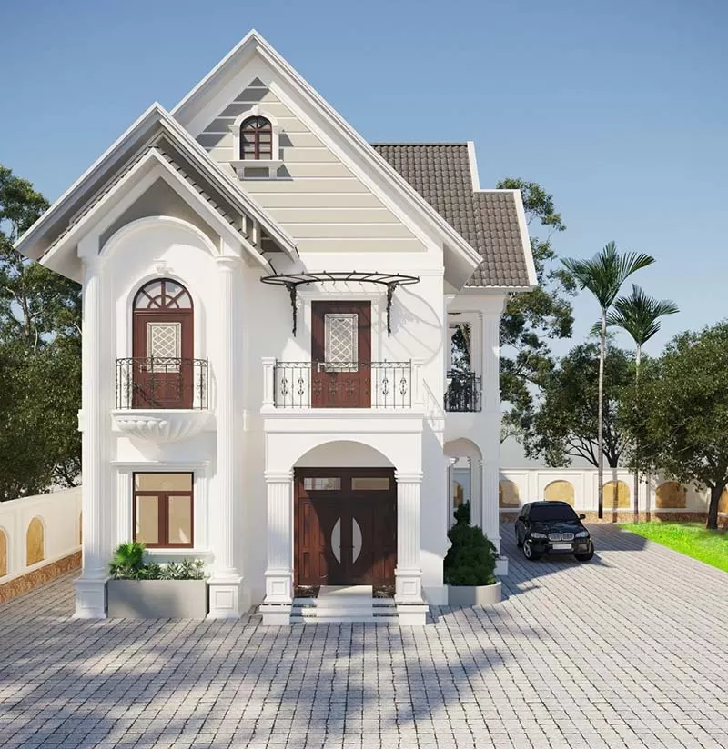 Nhà mái Thái 2 tầng 2 mặt tiền tân cổ điển