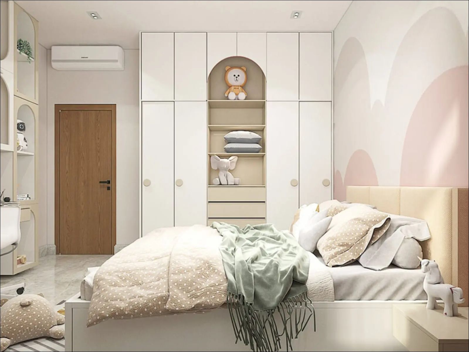 Phòng ngủ cho bé gái có tủ quần áo đẹp