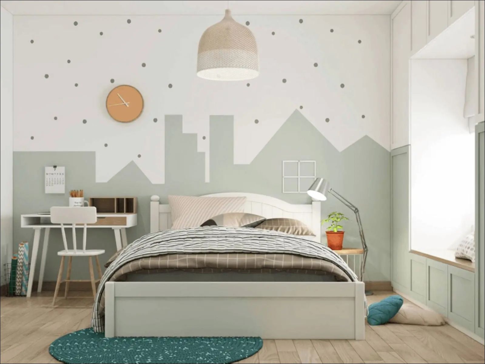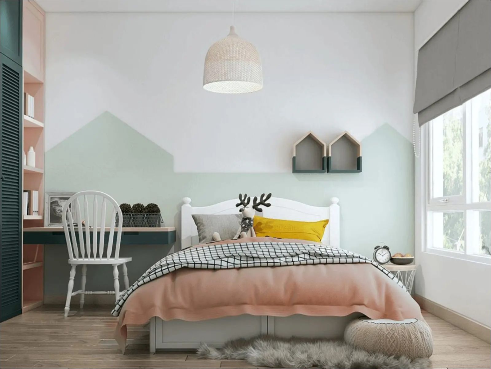 Những gam màu rực rỡ, vui tươi nhưng đảm bảo sự thanh khiết nhẹ nhàng như phòng ngủ màu hồng, màu trắng, xanh nước biển....là những ý tưởng hợp lý nhất.
