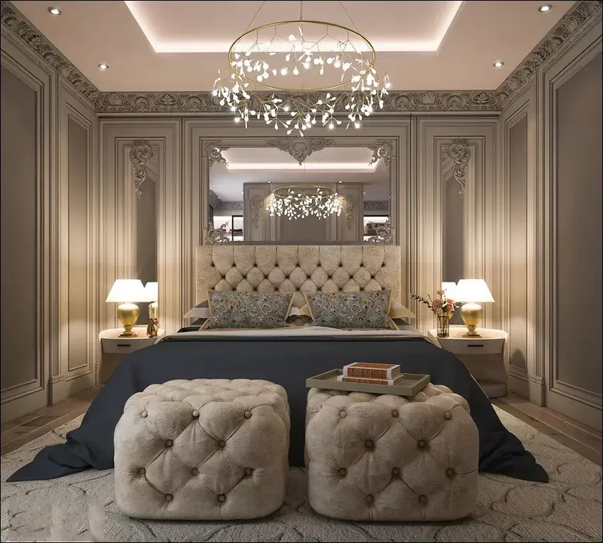 Đèn chùm không thể thiếu trong phong cách cổ điển. Một chiếc đèn chùm tinh tế được sử dụng cho không gian thêm sang trọng đẳng cấp. Bên cạnh đó bạn có thể lựa chọn đèn trang trí ở vị trí đầu giường, đèn treo tường hoặc đèn cây thư giãn.....