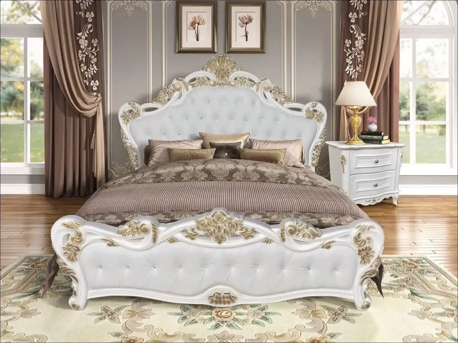 Giường ngủ chính là trung tâm của phòng ngủ. Trong thiết kế phòng ngủ cổ điển thì giường thường có đầu giường cao, thiết kế tỉ mỉ hoa văn sang trọng tinh tế. Đầu giường có kích thước lớn, đường cong mềm mại chất liệu cao cấp màu sắc hài hòa.