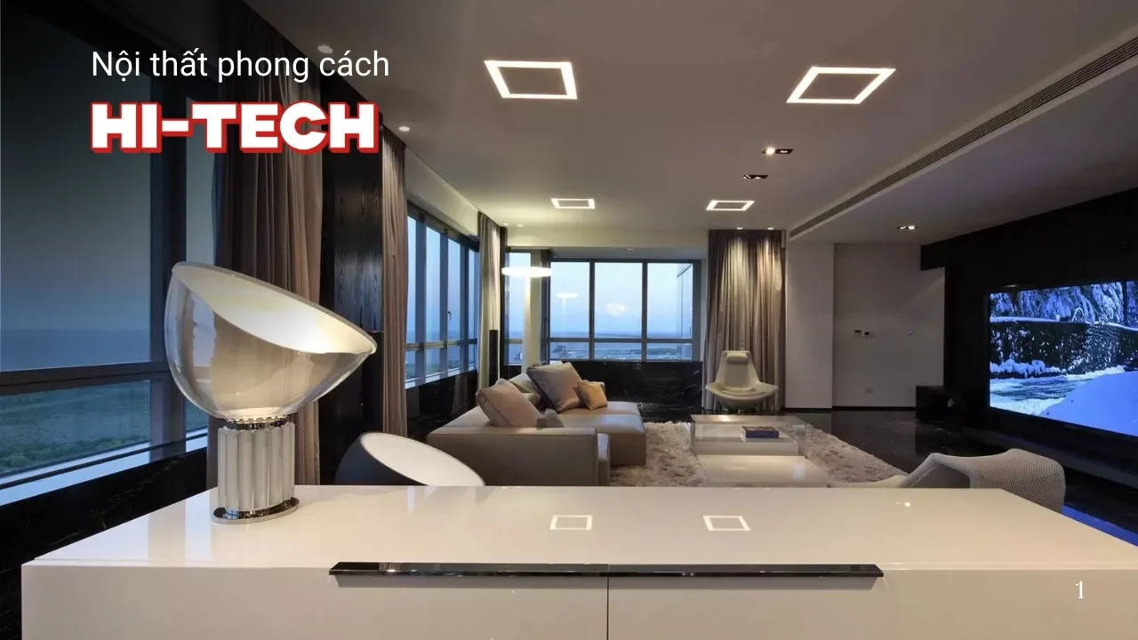 Phong cách nội thất hitech (High Technology - công nghệ cao) Là một loại hình kiến trúc sử dụng phần lớn các vật liệu, thiết bị, đồ nội thất hiện đại, thông minh, những sản phẩm công nghệ tiên tiến, tối giản, không cầu kỳ và rườm rà.