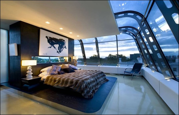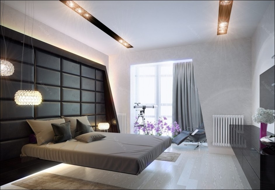 Nội thất phòng ngủ Hitech thường dùng những gam màu trung tính tạo cảm giác thư giãn, thoải mái. Hệ thống đèn ngủ chính là điểm nhấn cho căn phòng tuy nhiên cần chú ý đến những loại đèn, màu sắc, cường độ để không làm ảnh hưởng đến chất lượng giấc ngủ.
