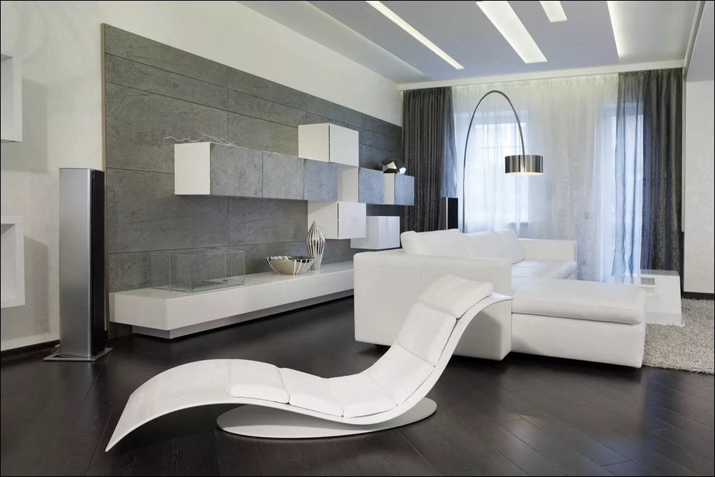 Hitech tối đa và lược bỏ những đồ nội thất không cần thiết, những đồ vật trang trí không chứa công năng sẽ không được sử dụng. Những loại đèn thường được gắn âm tường tạo hiệu ứng không gian đa sắc màu.