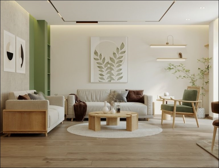 Một số vật dụng trang trí có thể là sofa, cây xanh hay tranh treo tường,....