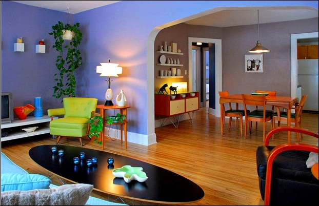 Phòng khách phong cách retro nội thất mang đến vẻ dẹp hoài cổ, sang trọng. Tuy nhiên nội thất được trang trí với những chi tiết cầu kỳ, tập trung dùng nội thất gọn nhẹ đơn giản mà có giá trị thẩm mỹ cao.