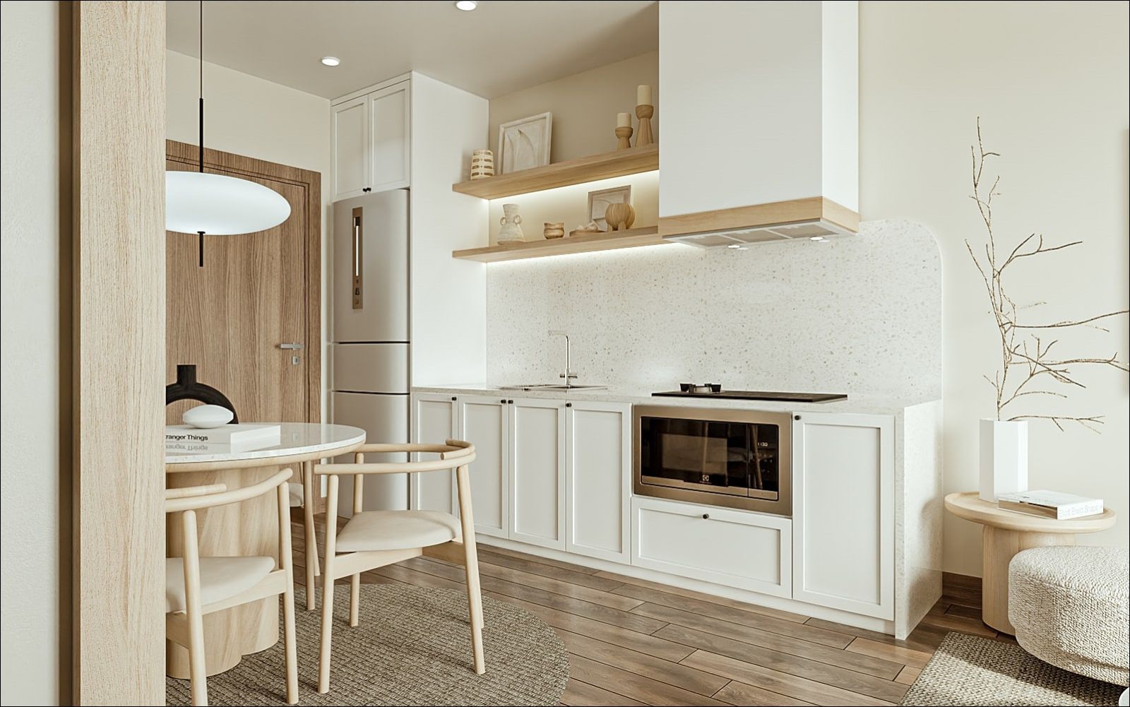 Phòng bếp nhỏ đẹp với gam màu sáng