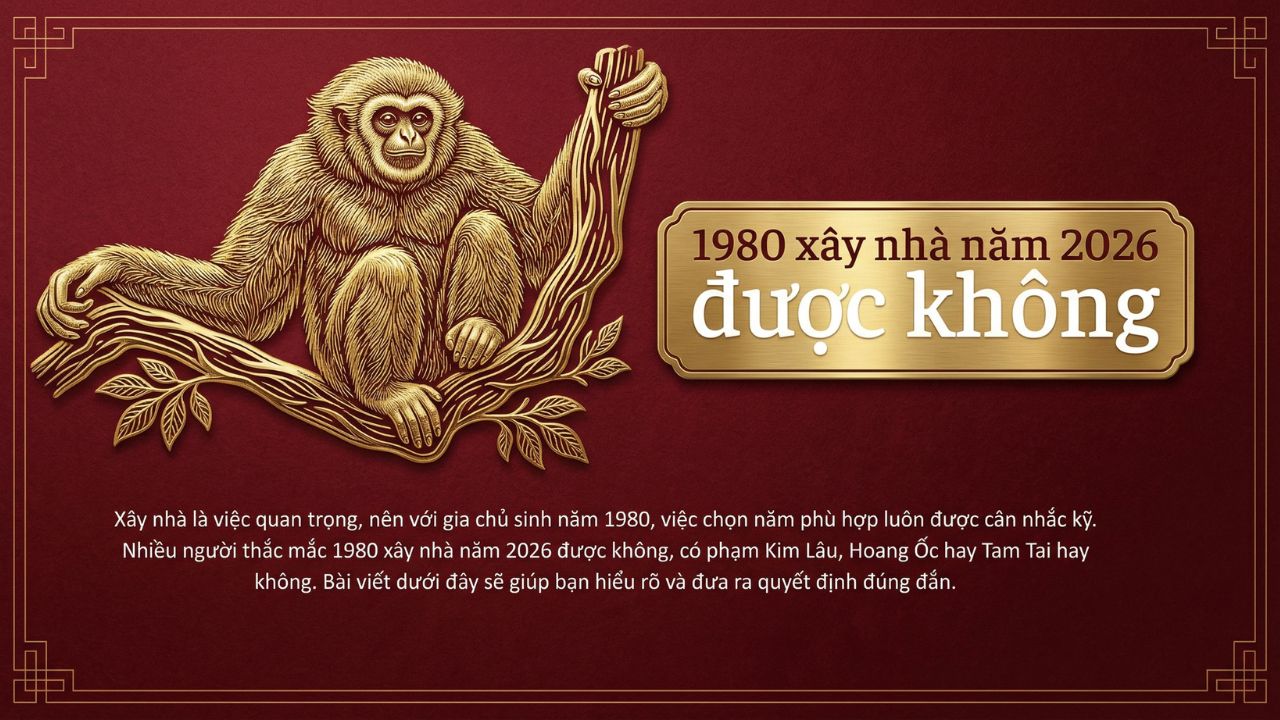 Xây nhà là việc lớn của đời người, đặc biệt với gia chủ sinh năm 1980, việc chọn đúng thời điểm càng được quan tâm kỹ lưỡng. Bước sang năm 2026, không ít người tuổi Canh Thân băn khoăn liệu 1980 xây nhà năm 2026 được không, có phạm Kim Lâu, Hoang Ốc hay Tam Tai hay không. Để tránh rủi ro phong thủy và đưa ra quyết định đúng đắn, việc xem xét kỹ từng yếu tố là điều không thể bỏ qua.