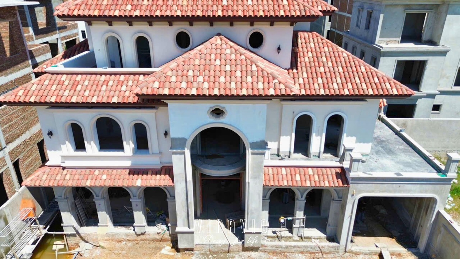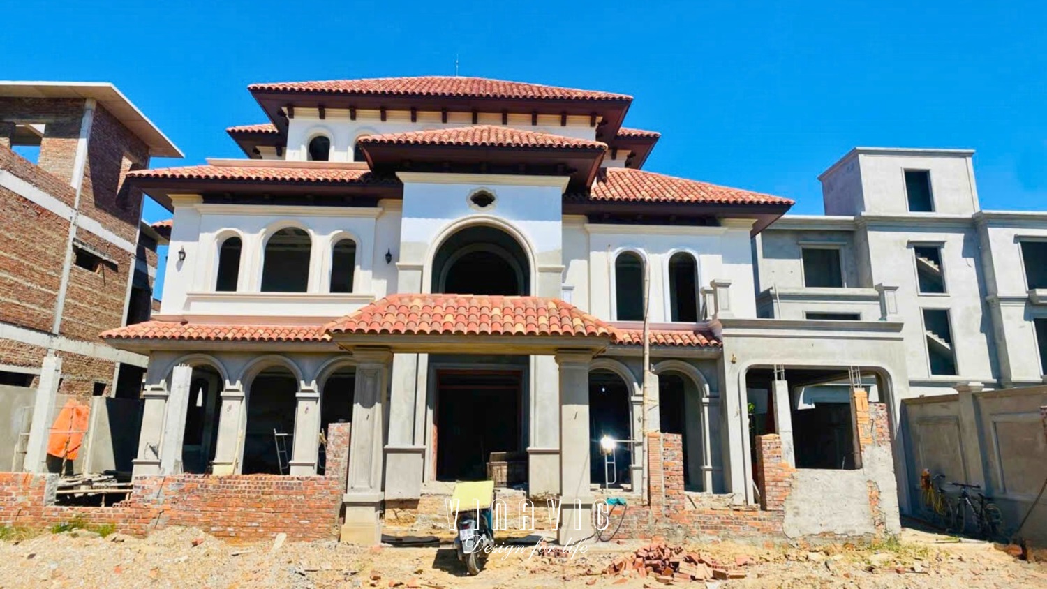 Công trình dần thành hình, bám sát bản vẽ từ bố cục kiến trúc, hệ mái, tông màu đến từng chi tiết phào chỉ. Mọi yếu tố từ hình khối, vật liệu cho tới màu sắc đều được thực hiện chuẩn xác – giữ trọn thần thái sang trọng và đẳng cấp như thiết kế ban đầu.