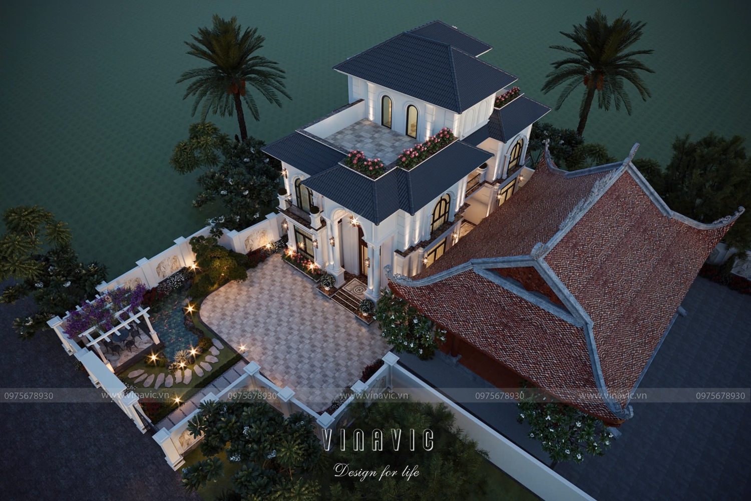 Tại mảnh đất Bắc Ninh giàu truyền thống văn hóa, dự án thiết kế biệt thự 3 tầng tân cổ điển mặt tiền 10m sâu 14m (B' Villa) BT2466 được Vinavic kiến tạo từ mong muốn của gia chủ: Làm sao để xây dựng một tổ ấm sang trọng, tiện nghi, mang hơi thở thời đại nhưng vẫn phải dung hòa, tôn kính tuyệt đối không gian nhà thờ họ linh thiêng đã hiện hữu ngay bên cạnh?