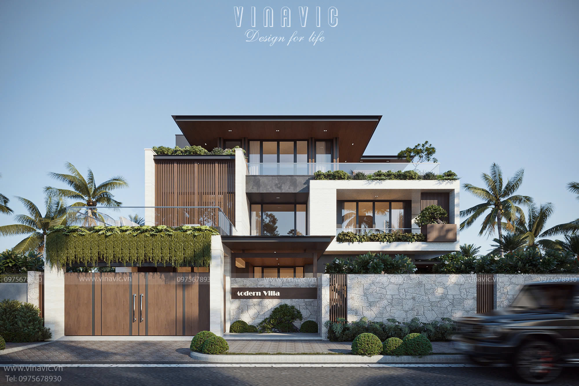 Điểm nổi bật trong thiết kế kiến trúc biệt thự hiện đại 3 tầng BT2412