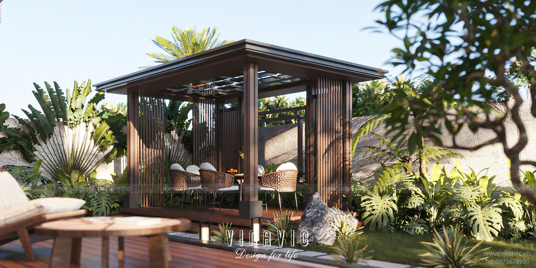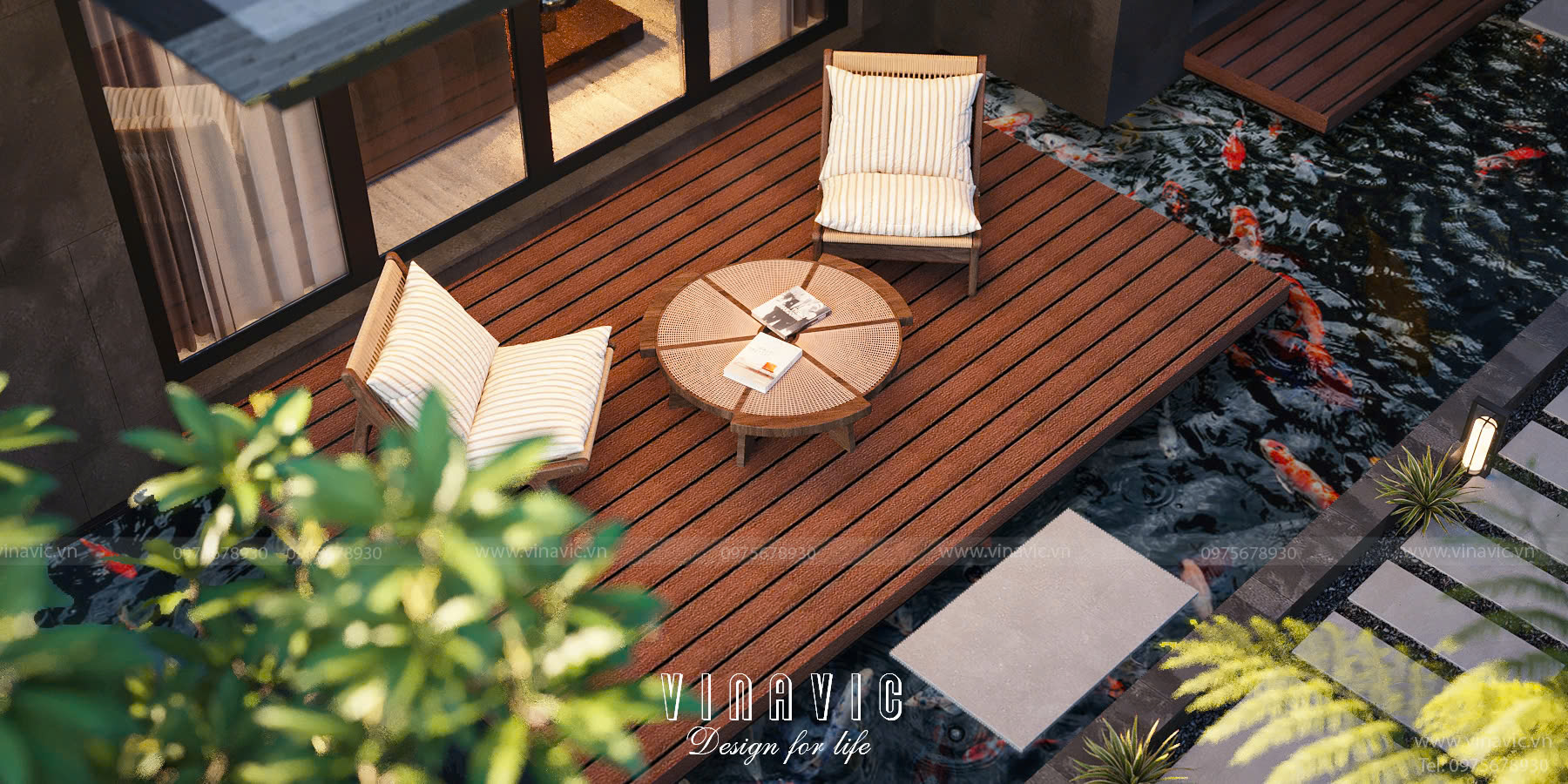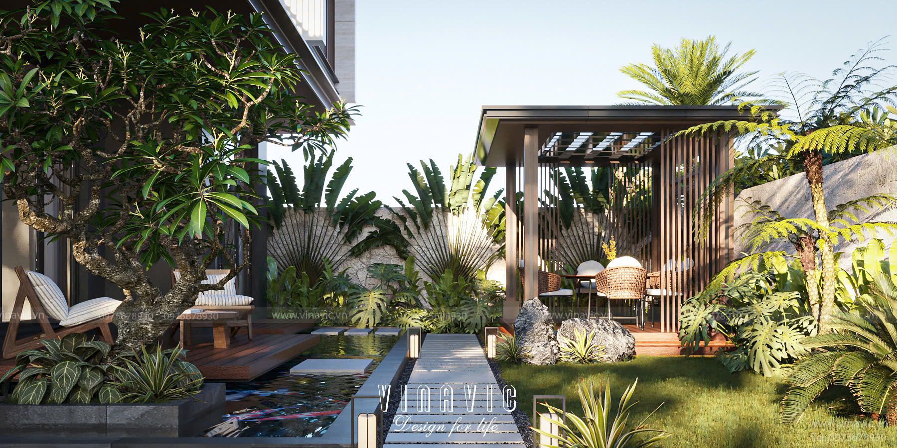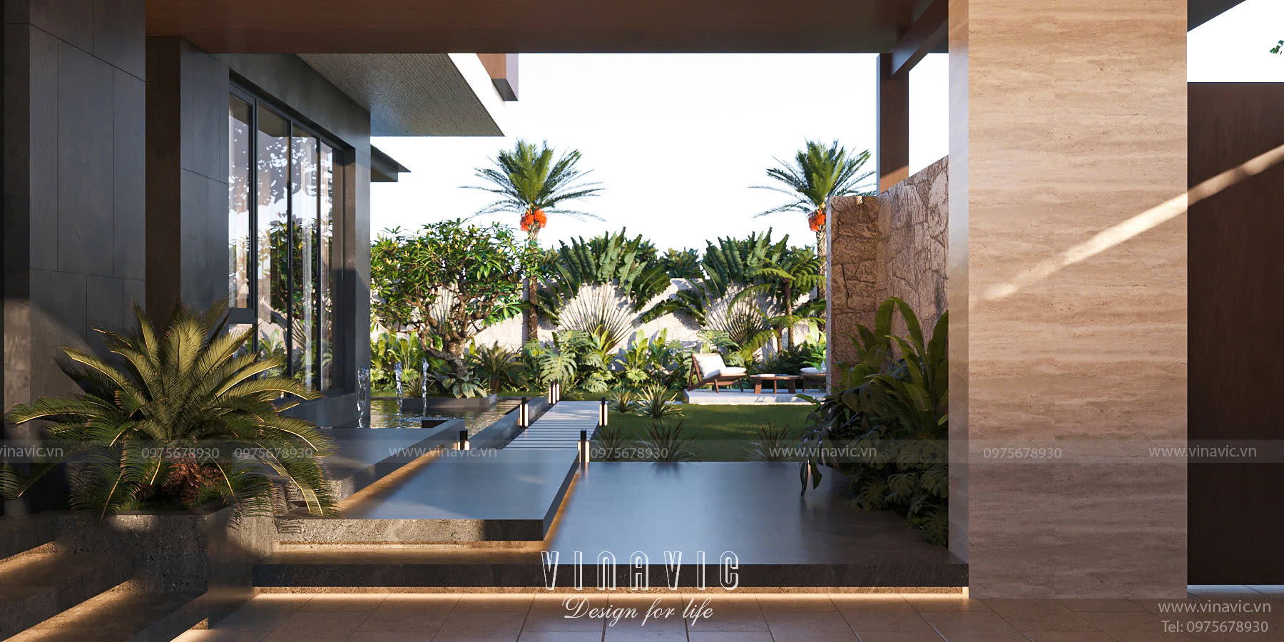 Không gian sân vườn và tiểu cảnh ấn tượng của biệt thự hiện đại BT2412
