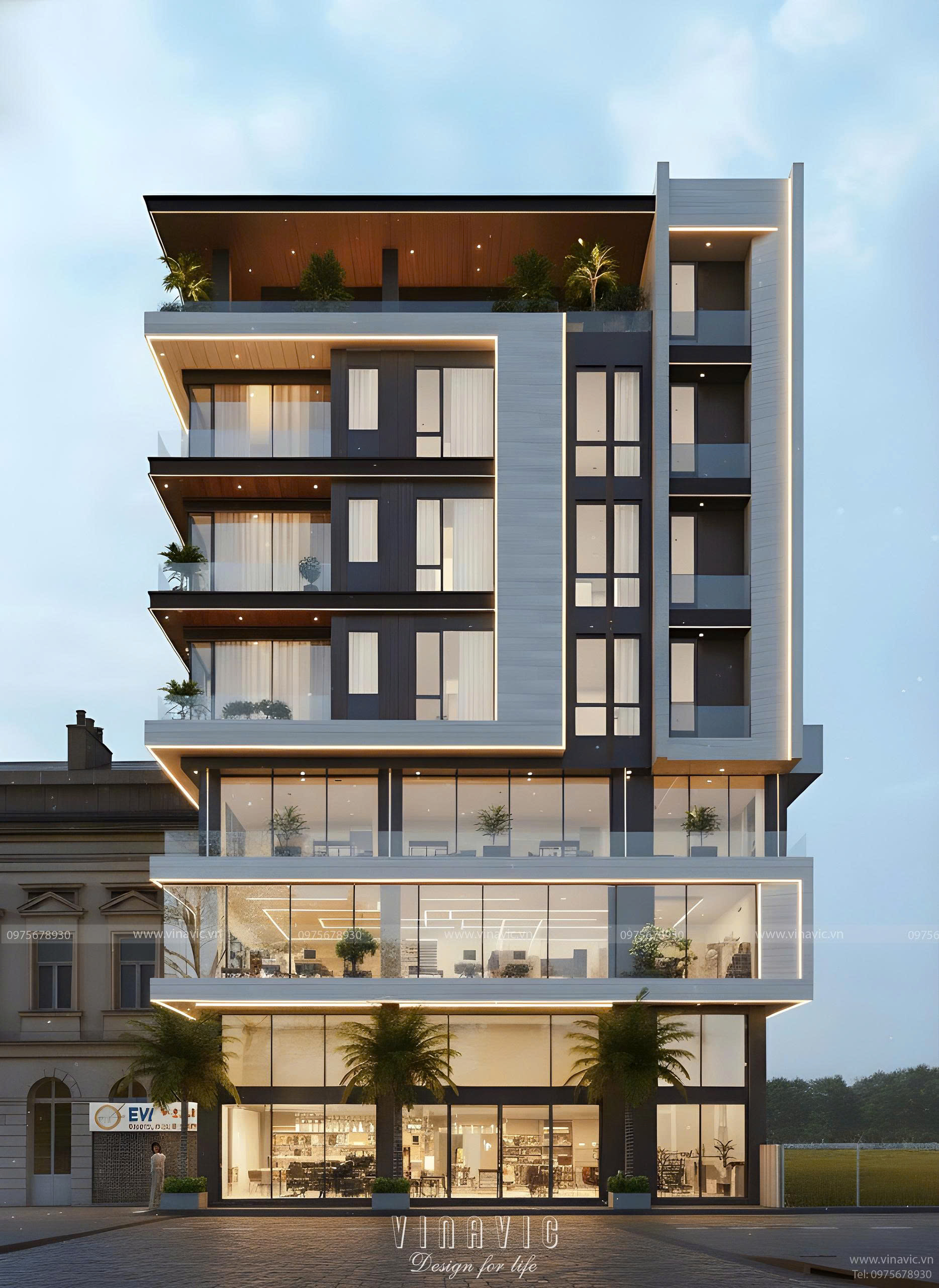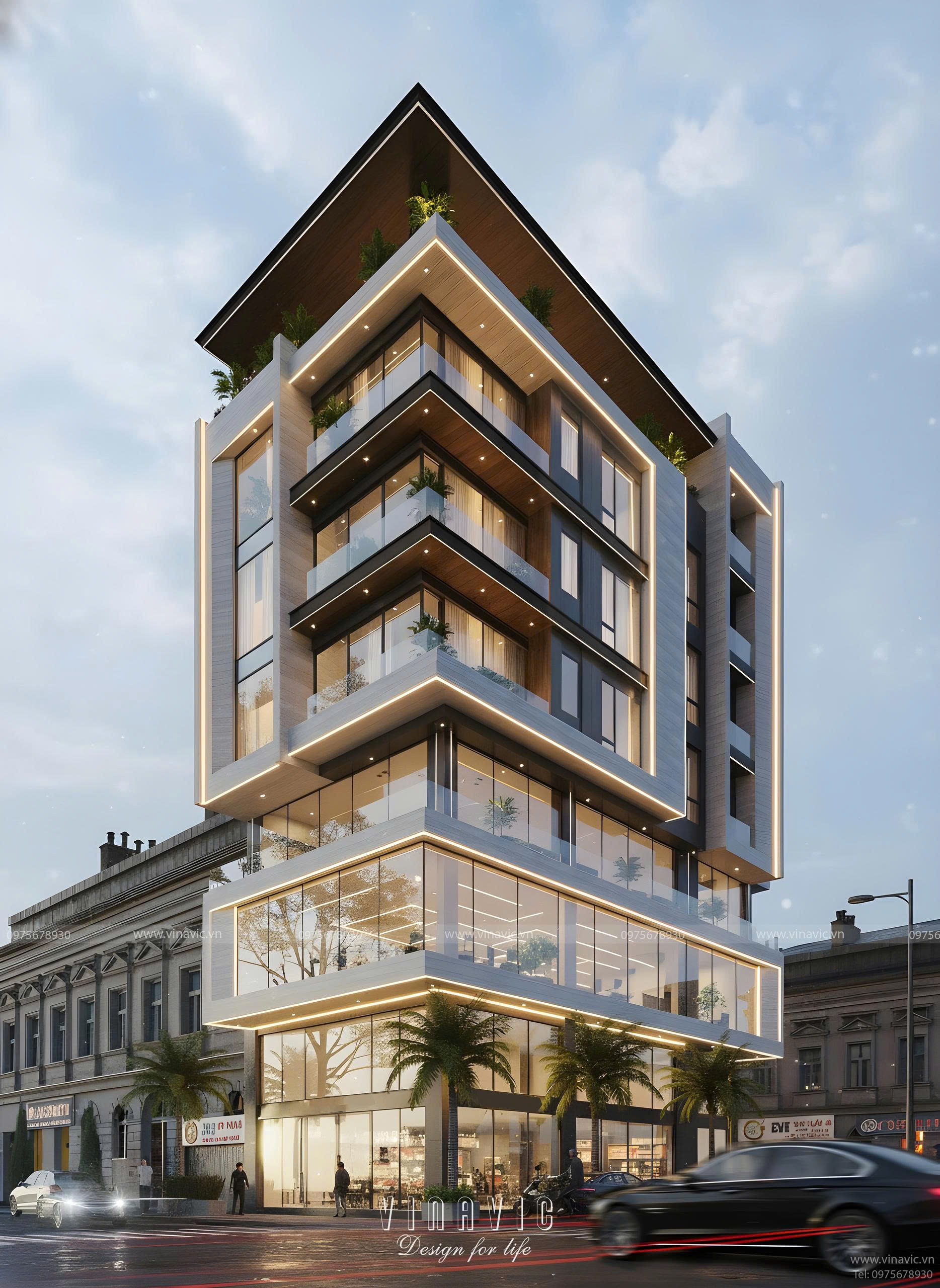 Vinavic - Bàn giao hồ sơ thiết kế nhà nghỉ 7 tầng kinh doanh hiện đại BT2429