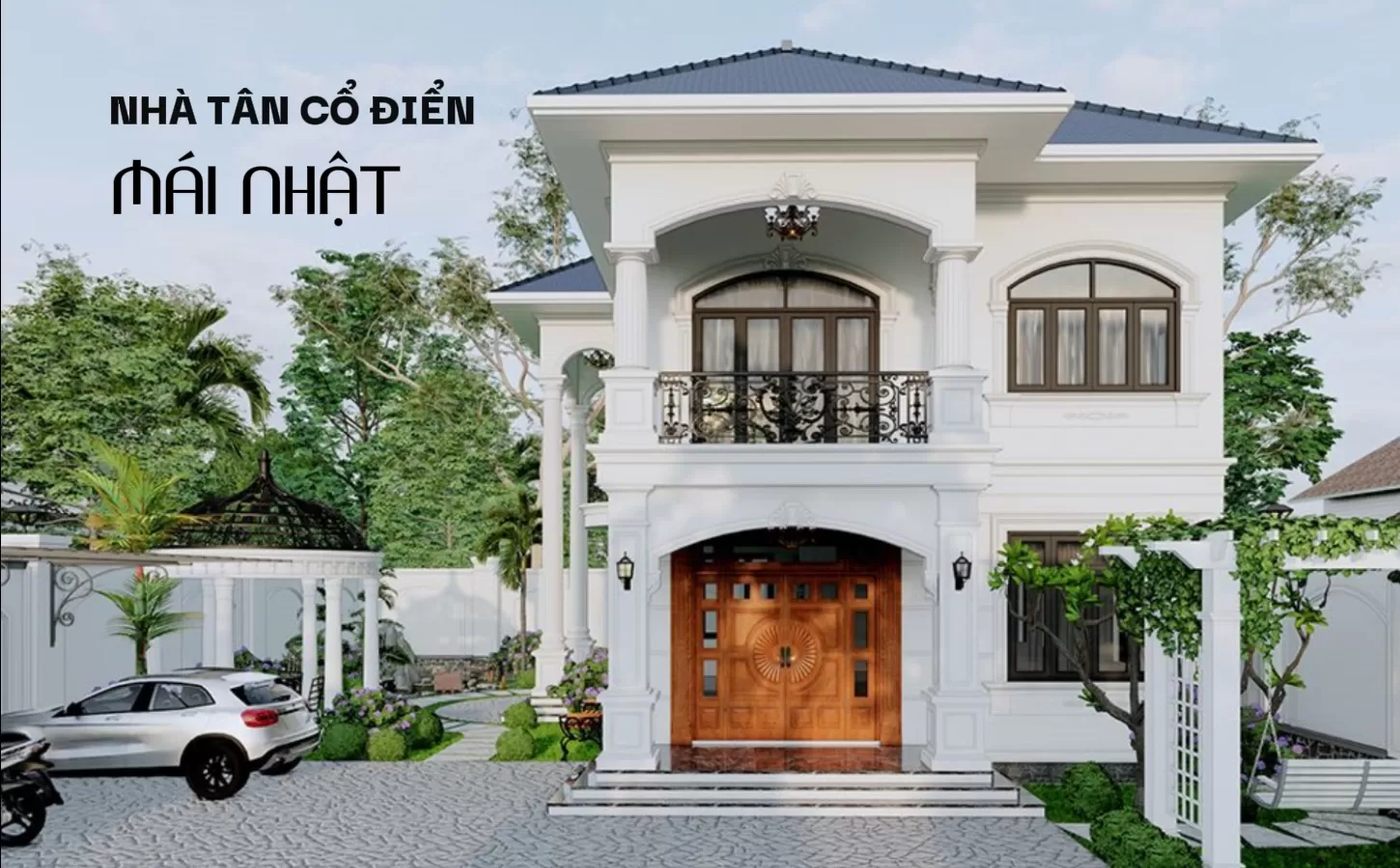 Nhà tân cổ điển mái nhật là kiểu nhà kết hợp giữa phong cách kiến trúc tân cổ điển và mái nhật. Phong cách tân cổ điển là sự kết hợp hài hòa giữa các đường nét tinh tế, cổ điển với các đường nét hiện đại, đơn giản. Mái nhật là kiểu mái có độ dốc vừa phải, hình chữ A, thường được làm bằng ngói hoặc tôn. Kiểu nhà này mang đến vẻ đẹp sang trọng, tinh tế, nhưng vẫn gần gũi với thiên nhiên. Nó phù hợp với nhiều gia đình, từ gia đình trẻ đến gia đình trung niên.